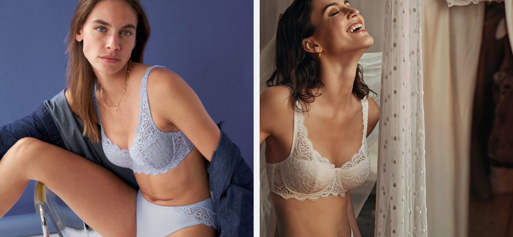 Ностальгия по эстетике 50-60-х годов проявляется через кружево, балконет-чашки и силуэты с акцентом на талию. Triumph возвращает классическую женственность в современном прочтении, напоминая, что элегантность находится вне времени.